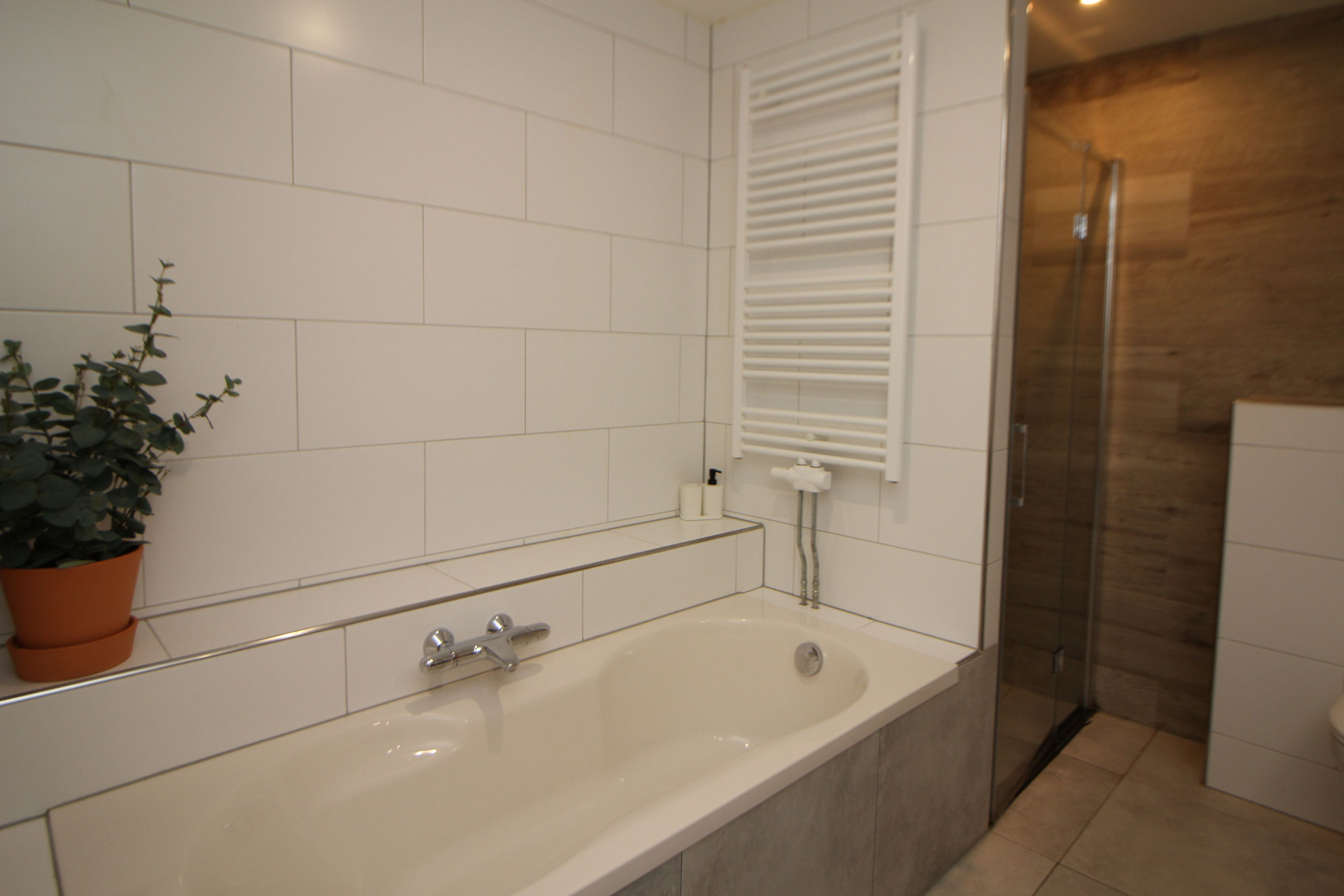 De badkamer is voorzien van een ligbad én een regendouche, zodat je ook hier kunt ontspannen na een lange dag.