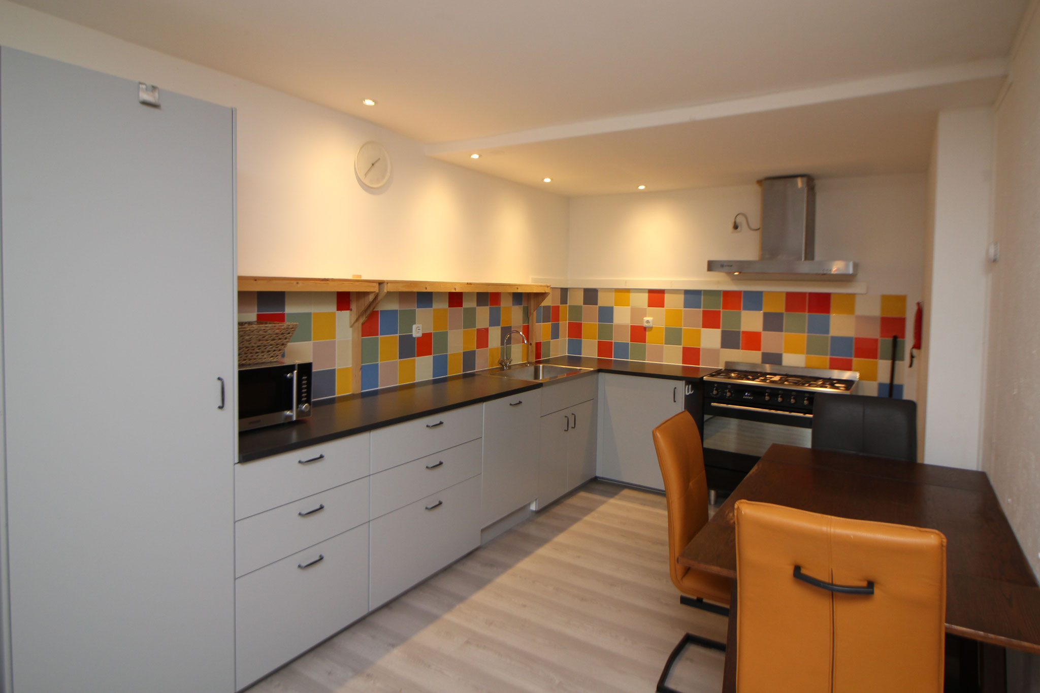 Dit appartement heeft een ruime open woonkamer met een goed uitgeruste keuken. Je vindt hier onder andere een vaatwasser, een 6-pits gasfornuis en een grote oven — perfect als je zelf graag uitgebreid kookt. Alle keukenbenodigdheden zijn aanwezig, behalve de boodschappen 😉